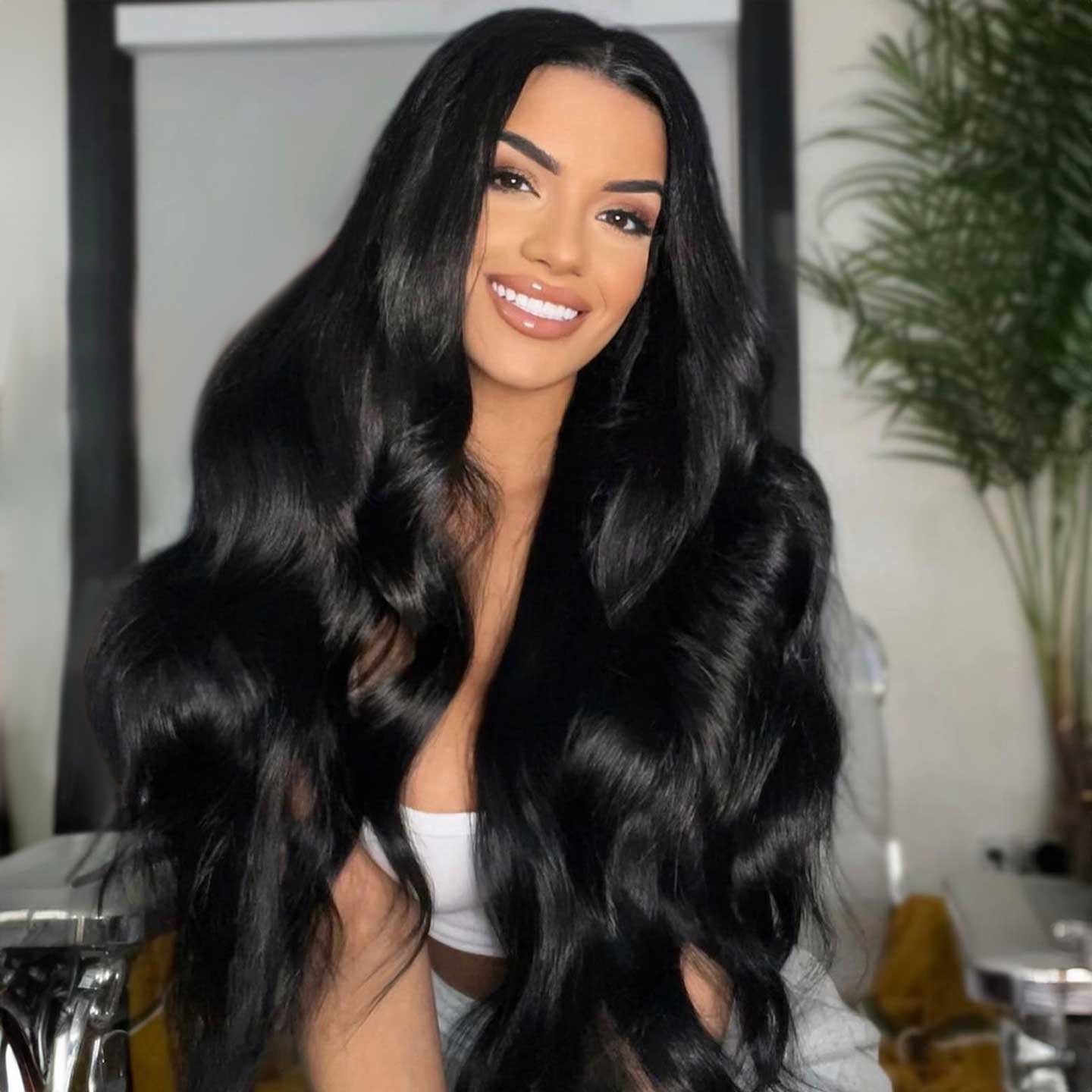Body Wave Natural Black 13x4 Lace Front Human Hair Wig With Bleached Knots